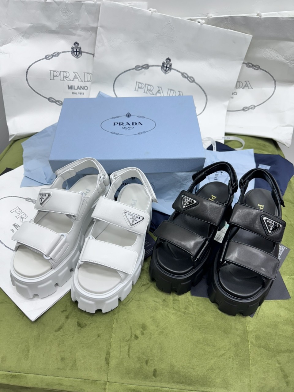 프라다24ss 봄여름 신상 벨크로 통굽 샌들