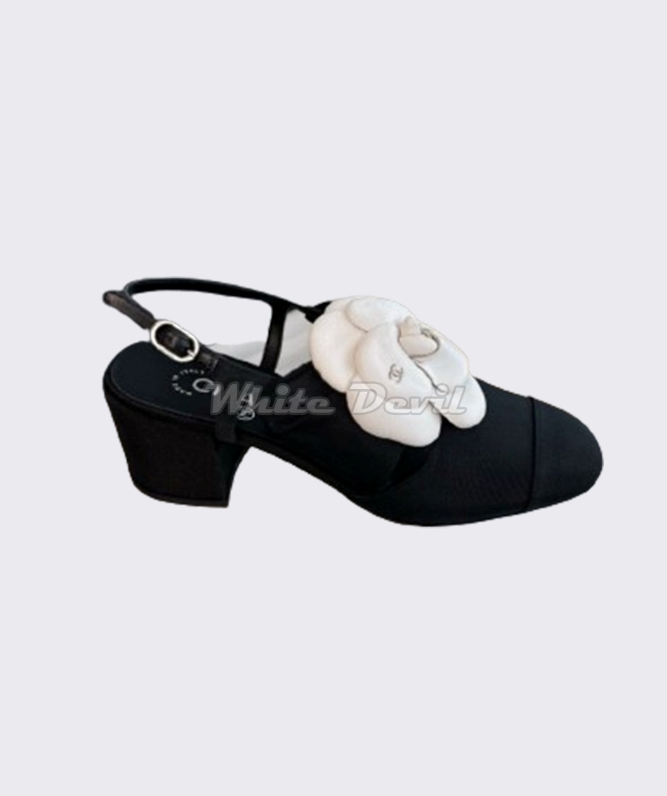 샤넬 24k 카멜리아 리본 통굽 샌들