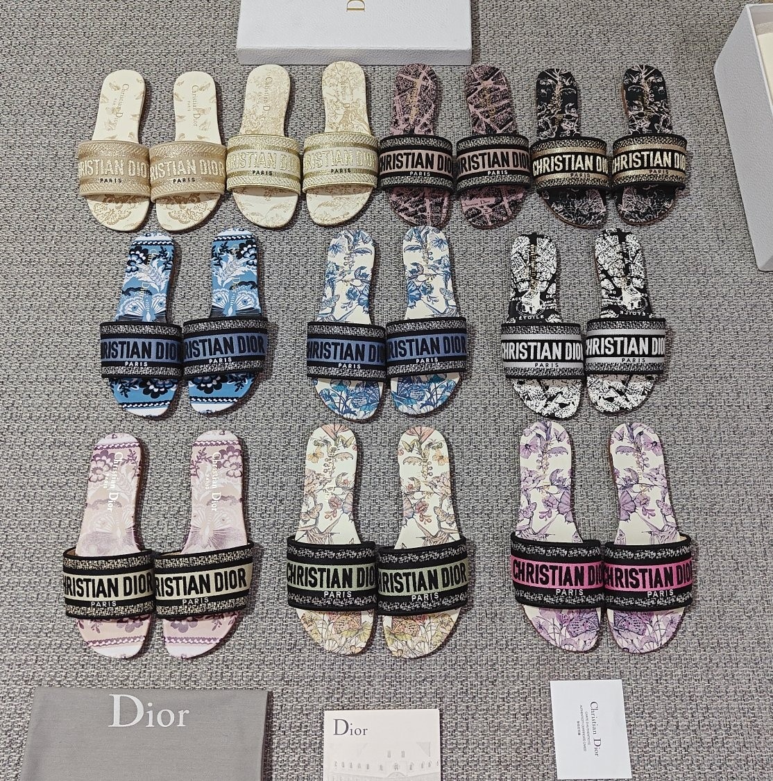 디올 24ss 봄여름 자수 짜임 이니셜 뮬 슬리퍼