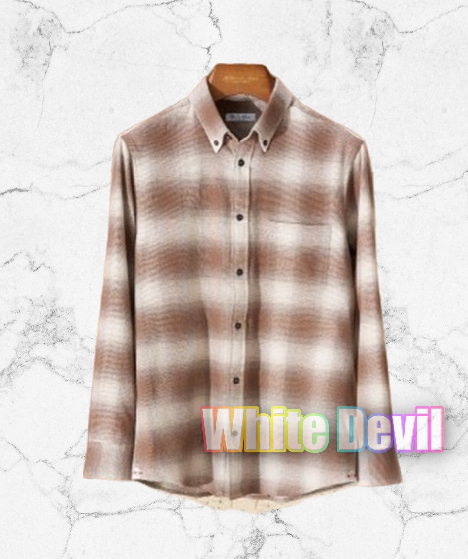 도톰한 버전의 플란넬 원단 넥 버튼형 캐주얼 긴팔 셔츠