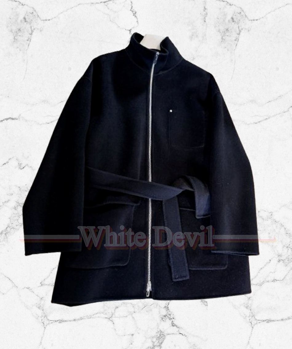 HERMES 25S H라인 하이넥 양면 캐시미어 집업 오버핏 코트