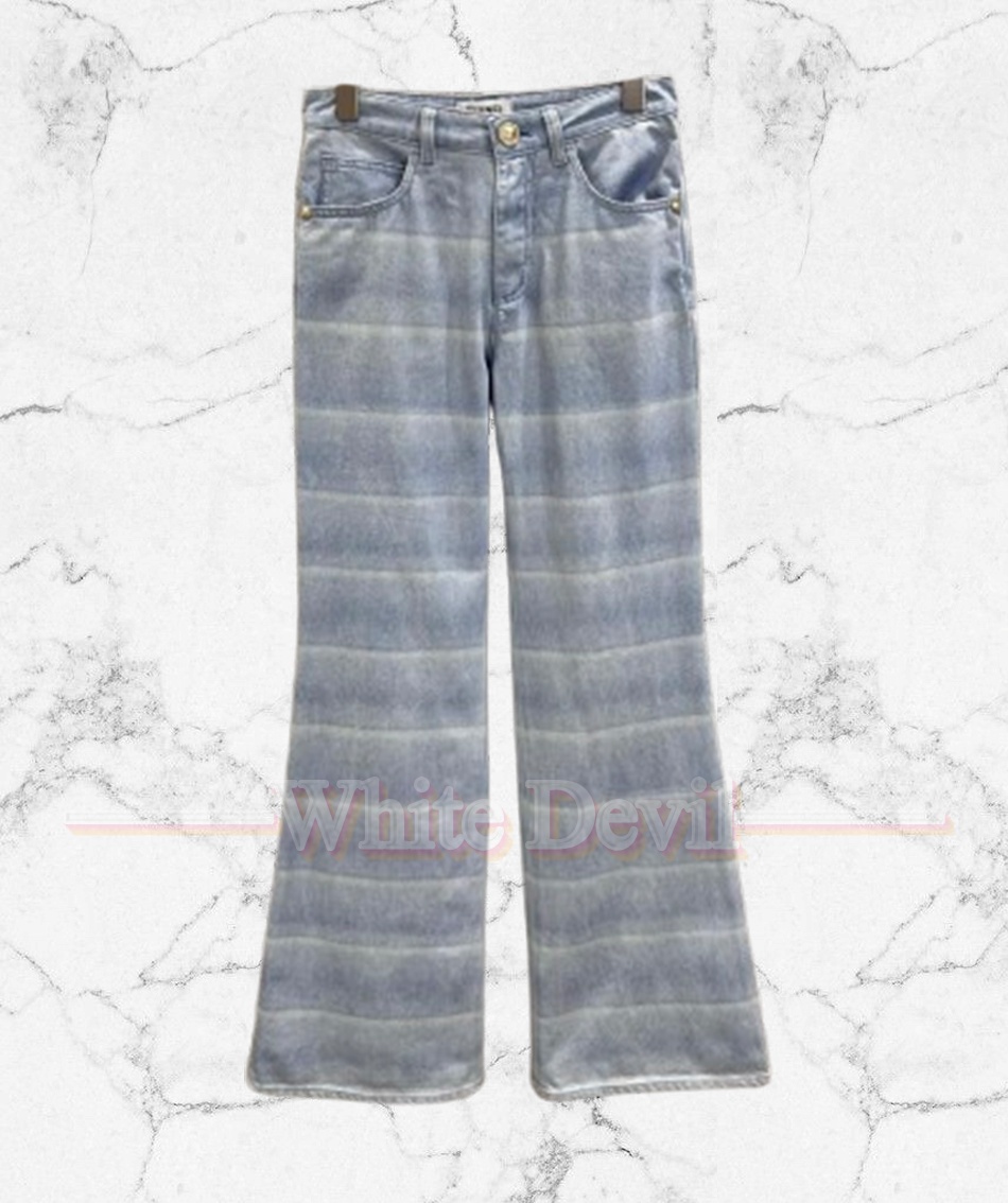 샤넬 26C 이른 봄 신상 블루-화이트 스트라이프 와이드 데님 팬츠