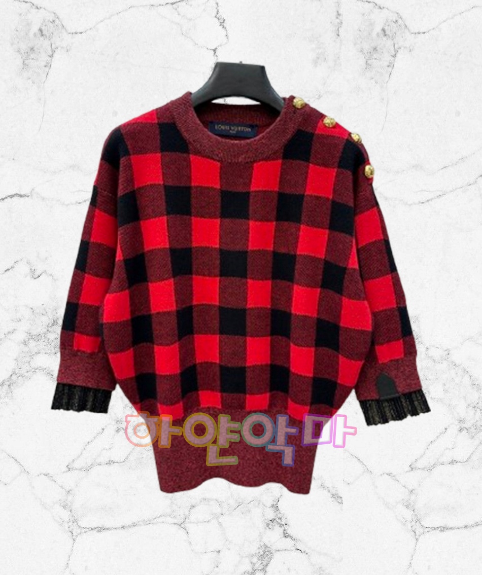 루이비통 25 신상 빈티지 레드 블랙 체크무늬 칠부 니트