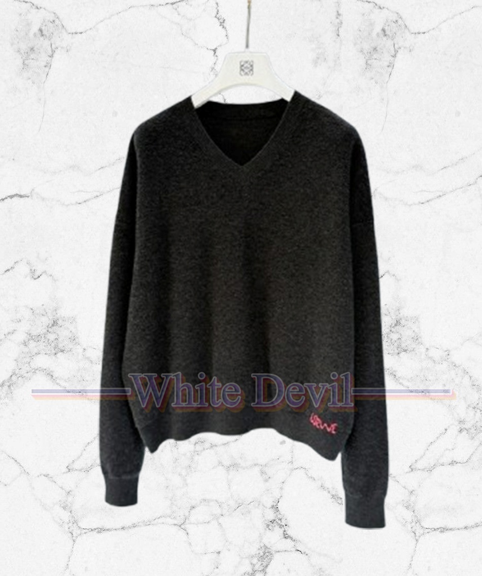 로에베 25 가을 겨울 자수 로고 디자인 브이넥 니트