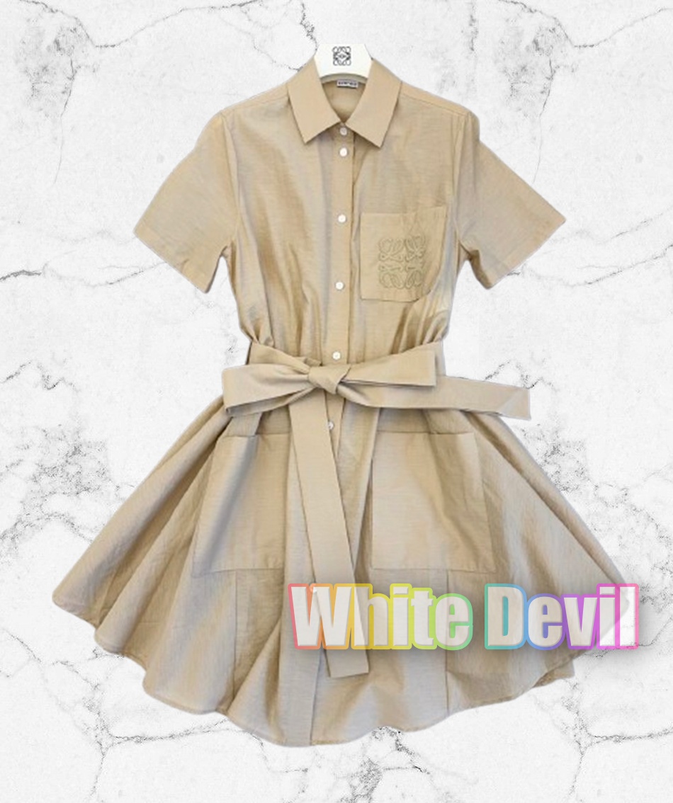 로에베 2025 신상 폴라즈 한정 면 마 셔츠형 리본 원피스 커팅 원단,