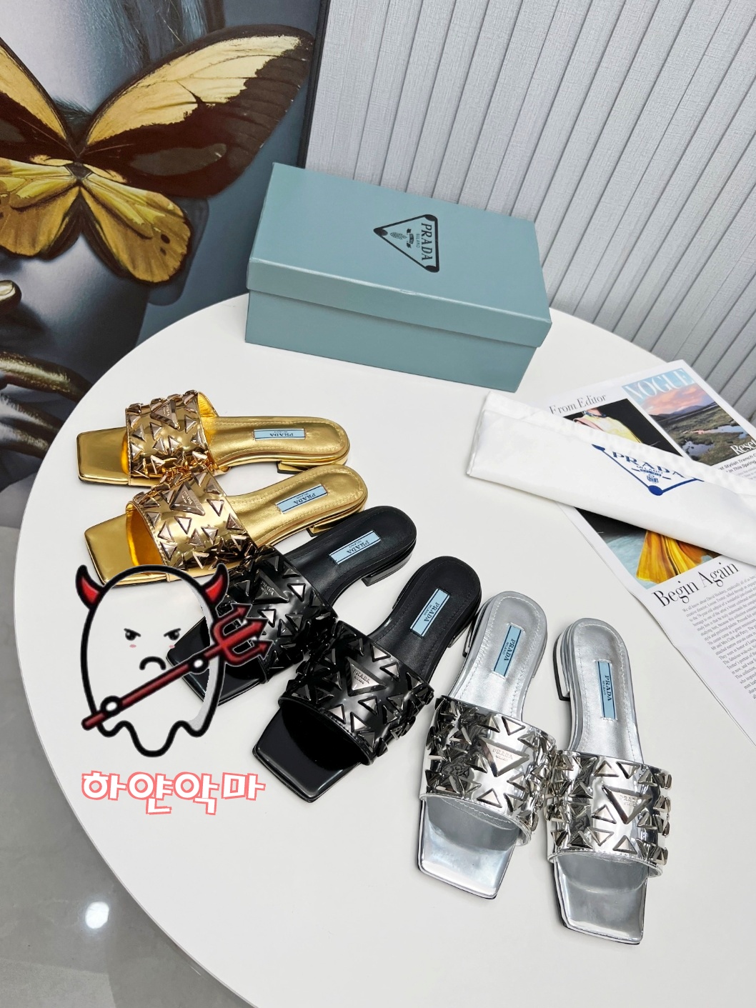 프라다 슬리퍼 [ 블랙,골드,실버 ]