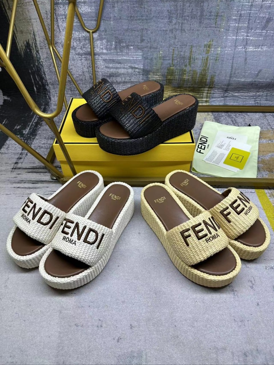 펜디 신상 와이드 통굽 슬리퍼