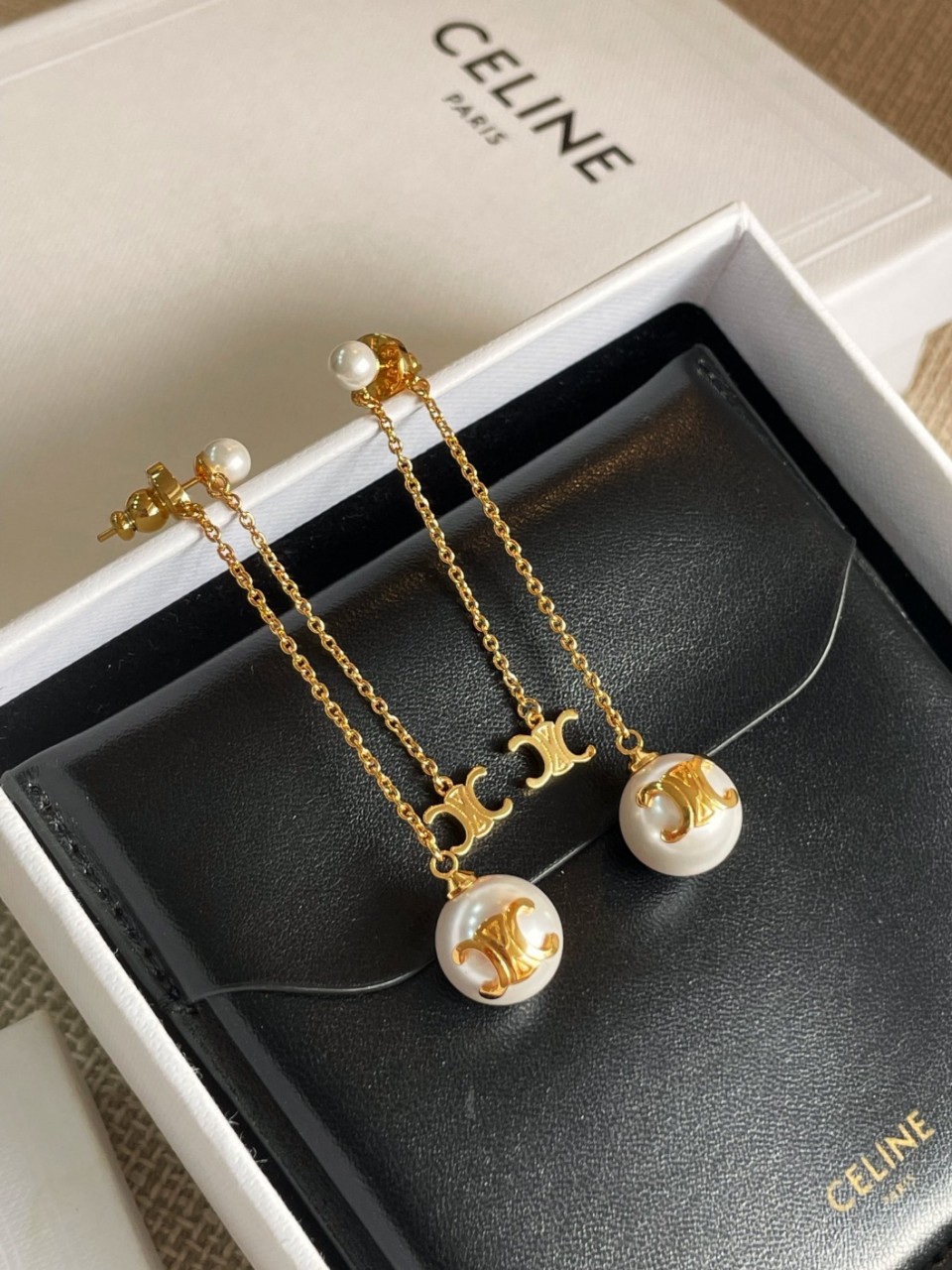 셀린느 더블체인 개선문 구슬귀걸이