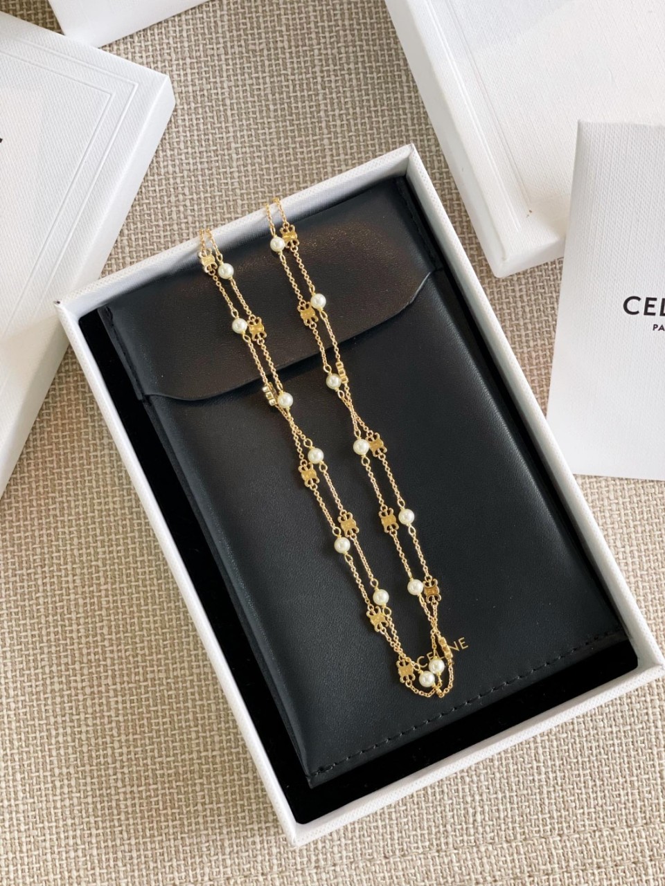 셀린느 이중 개선문 구슬 목걸이