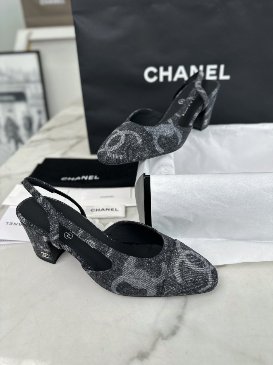 샤넬 24K 타닌데님 키높이 슬링백