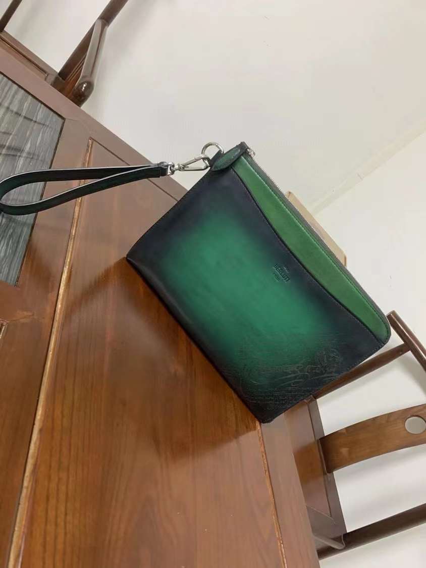 BERLUTI 니노 GM 스크리토 스와이프 패턴 가죽 클러치