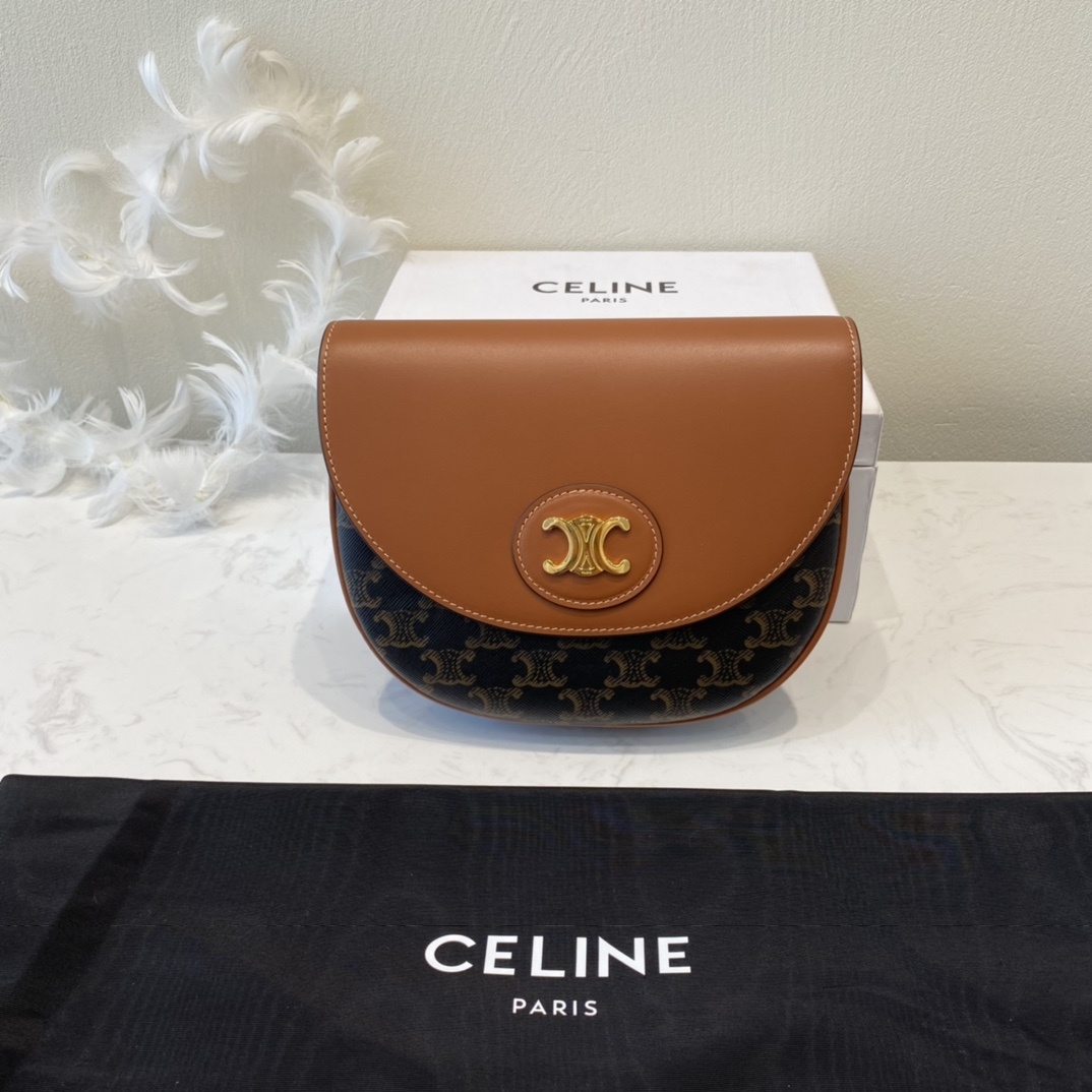 CE의 최신 TRIOMPHE CANVAS 로고 프린트 안장 가방