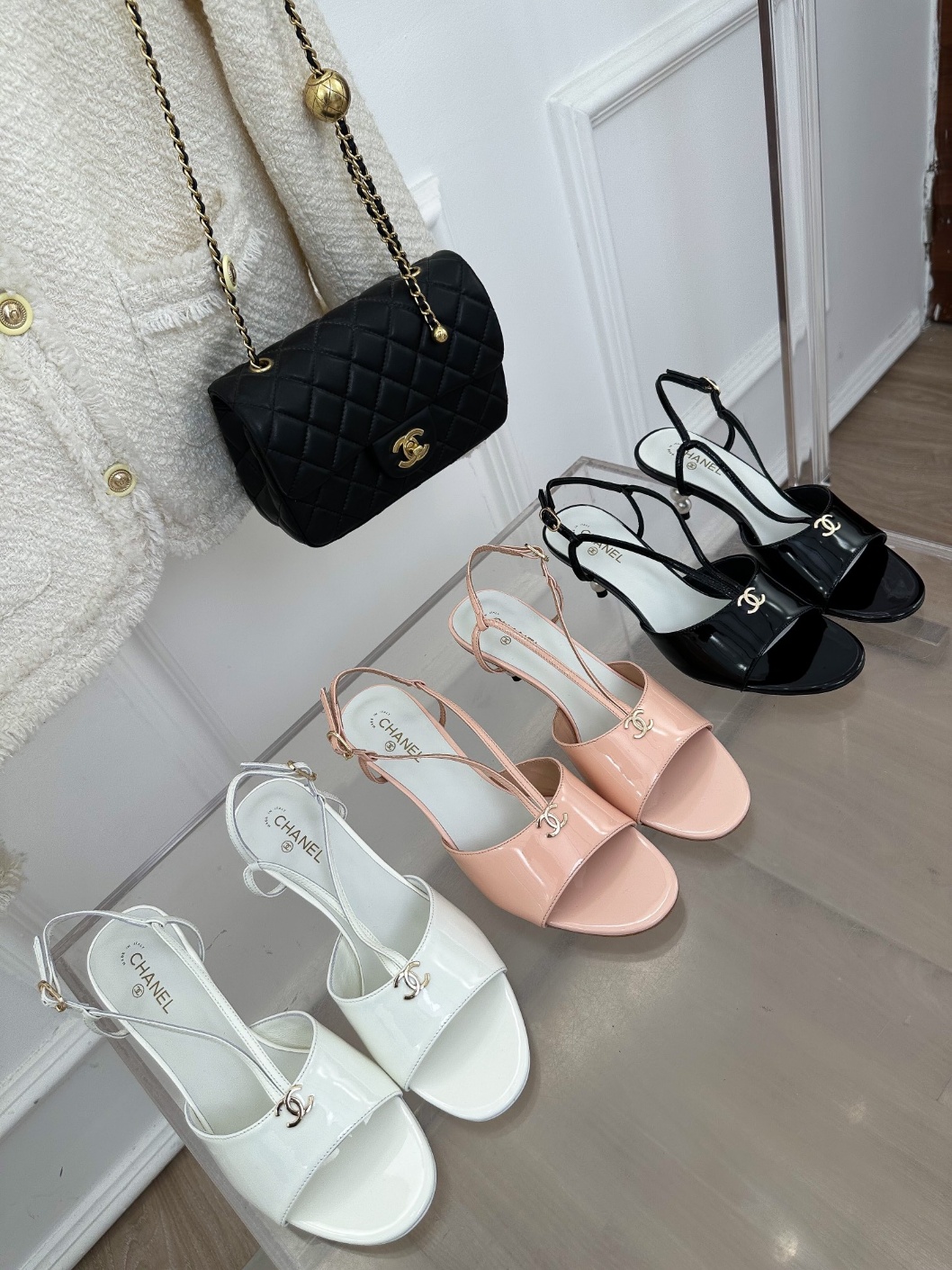 CHANE* 23P 신상품 섹시 진주 힐 샌들
