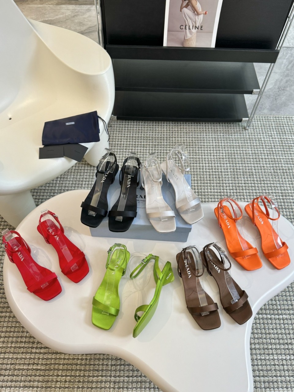 프라다 24 초봄 신상 일자벨트 삼각굽 샌들
