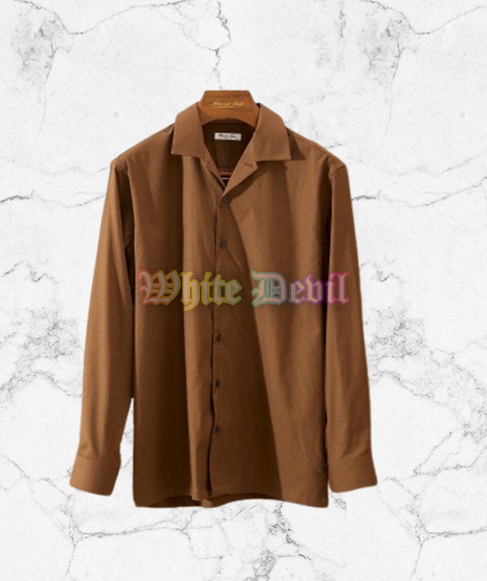 LP 헤링본 원단 실크 스퀘어 칼라 쿠바 넥 투웨어 디자인 긴팔 셔츠