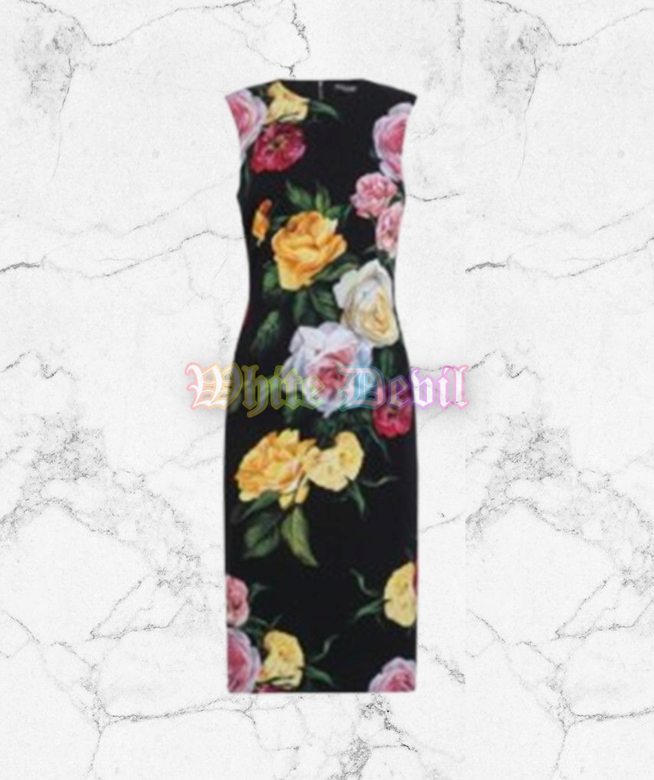 D&G 25 블랙 시실리 여성 플라워 실크 원피스