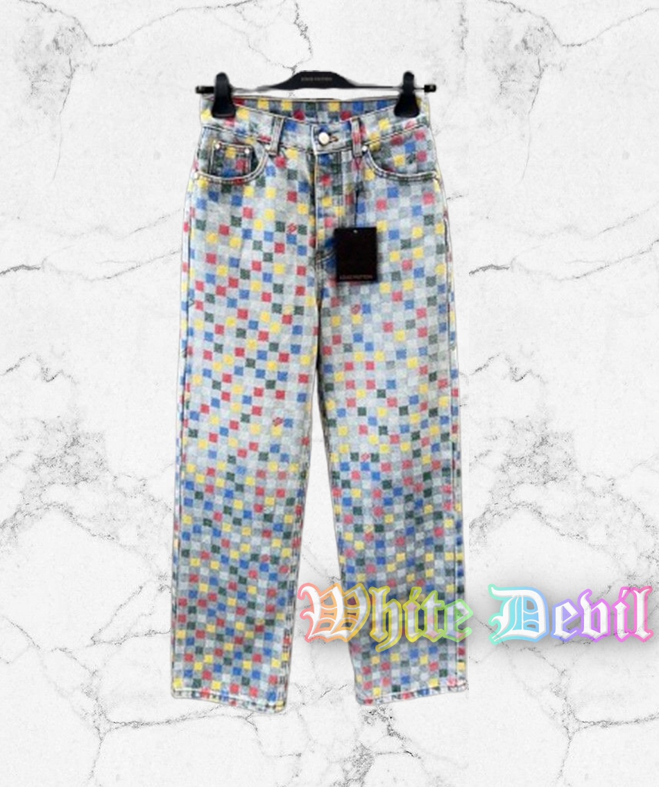 루이비통 25 새로운 컬러 체스판 체크 데님 팬츠