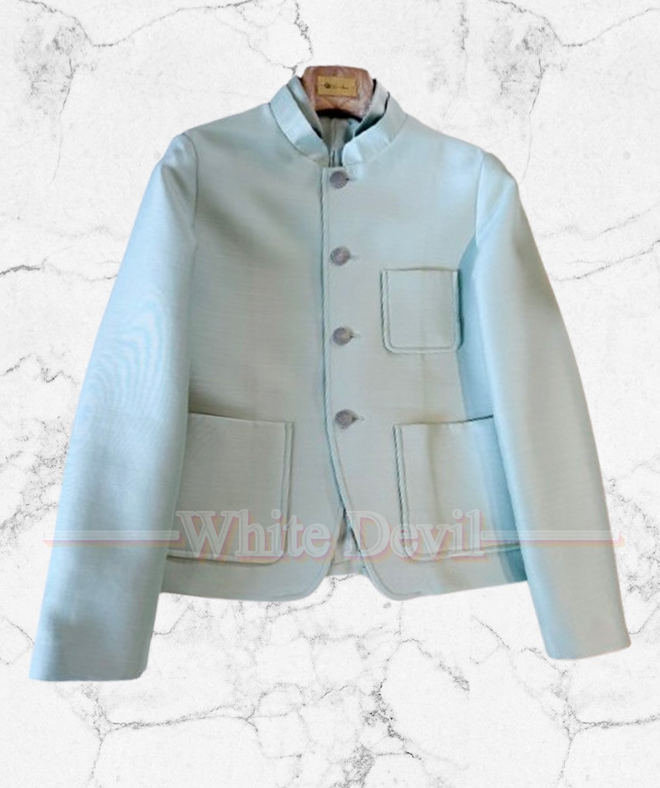 Loro Piana 25S 마린 민트 실크 울 세로줄 정장 코트