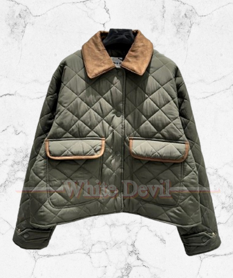 미우미우 25 신상 올리브 퀼팅 재킷