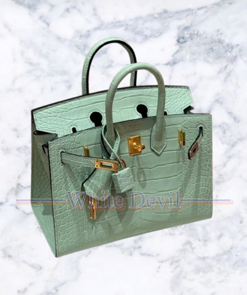 버킨백 20cm, 민트, 프랑스 수입 메트 아메리카악어