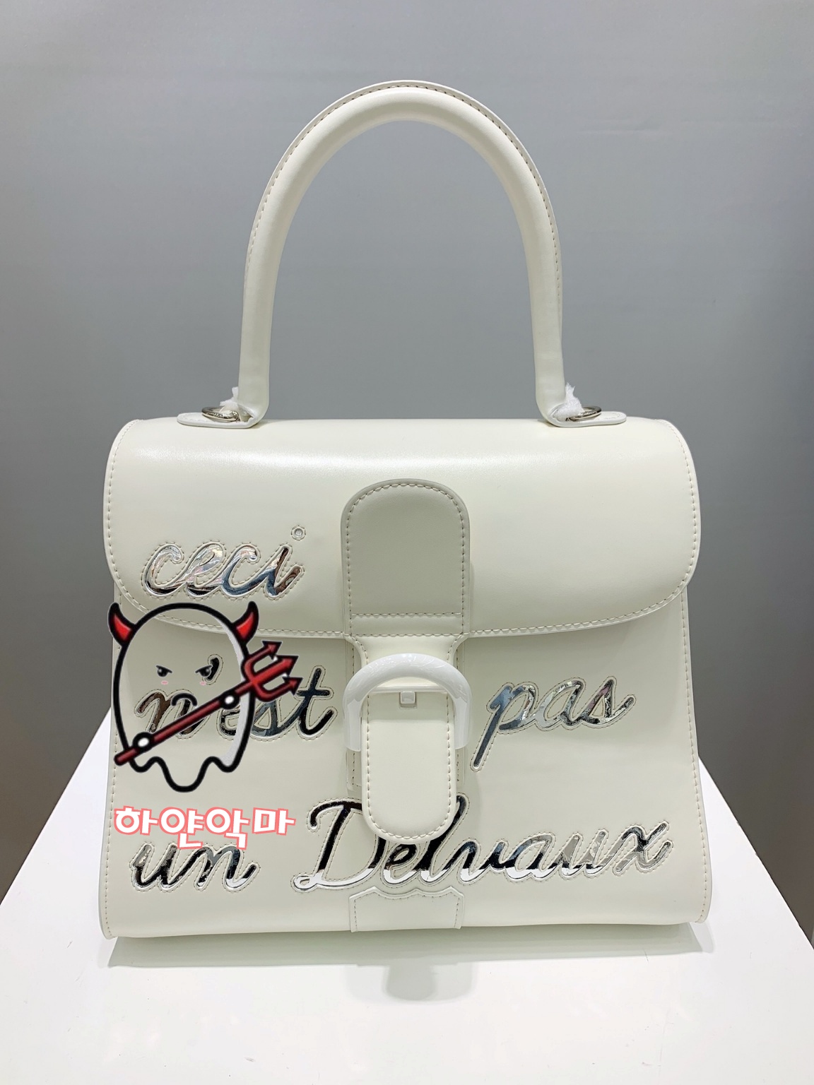 델보 신판 화이트 레터링 가방