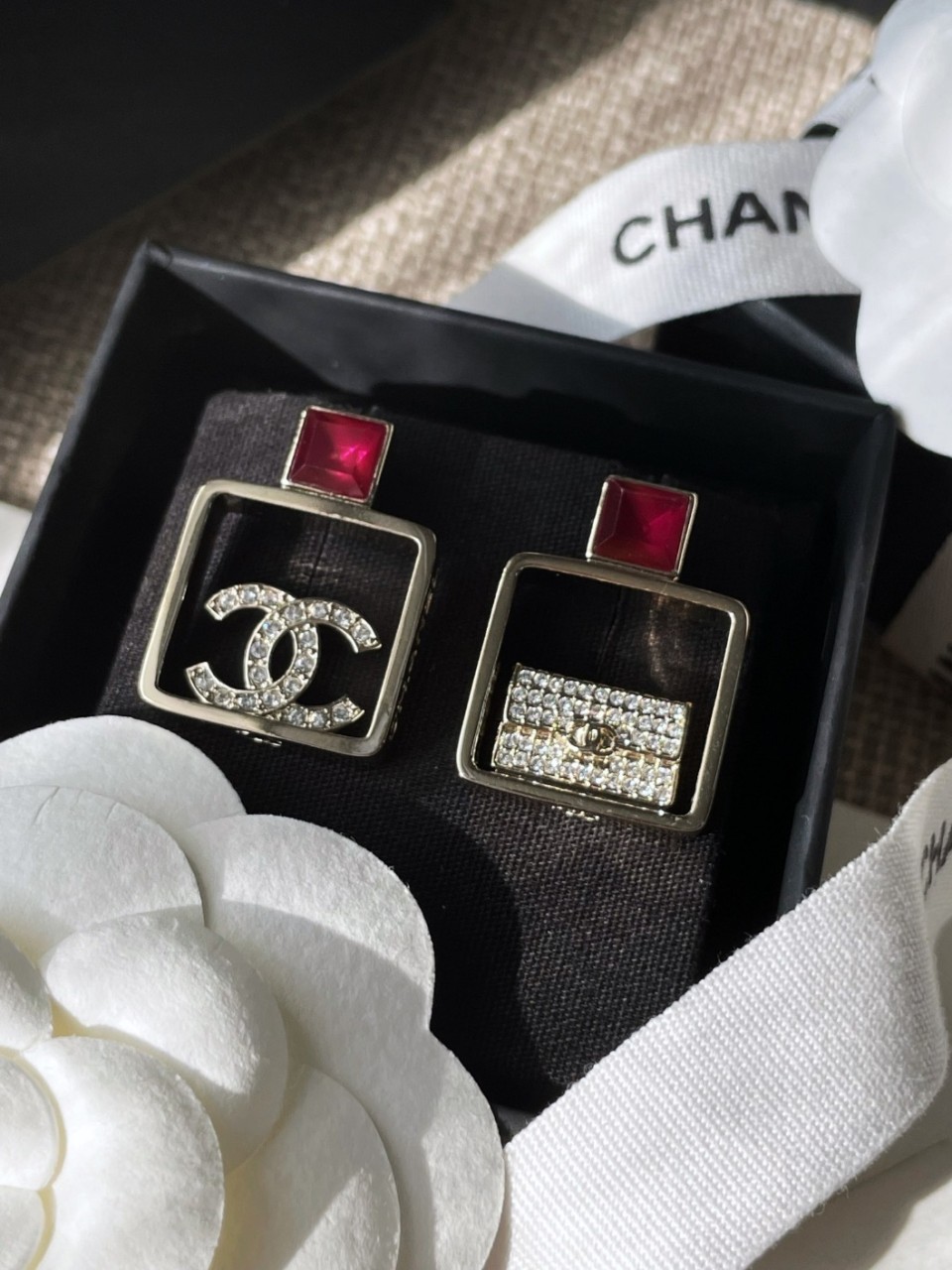 샤넬 펀칭 스퀘어 더블 C 백 큐빅 이어링