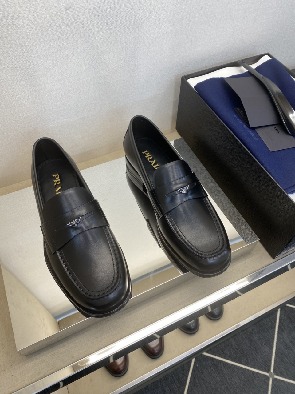 프라다 최고급 공예품 스타일리시 정장가죽 로퍼