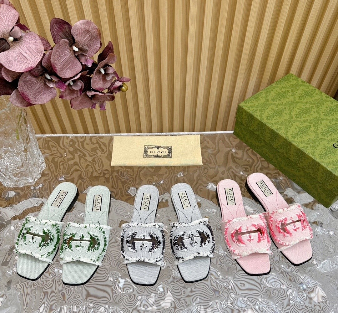 2024 봄여름 신상 구찌 24S 더블 G패브릭 펀칭 슬리퍼