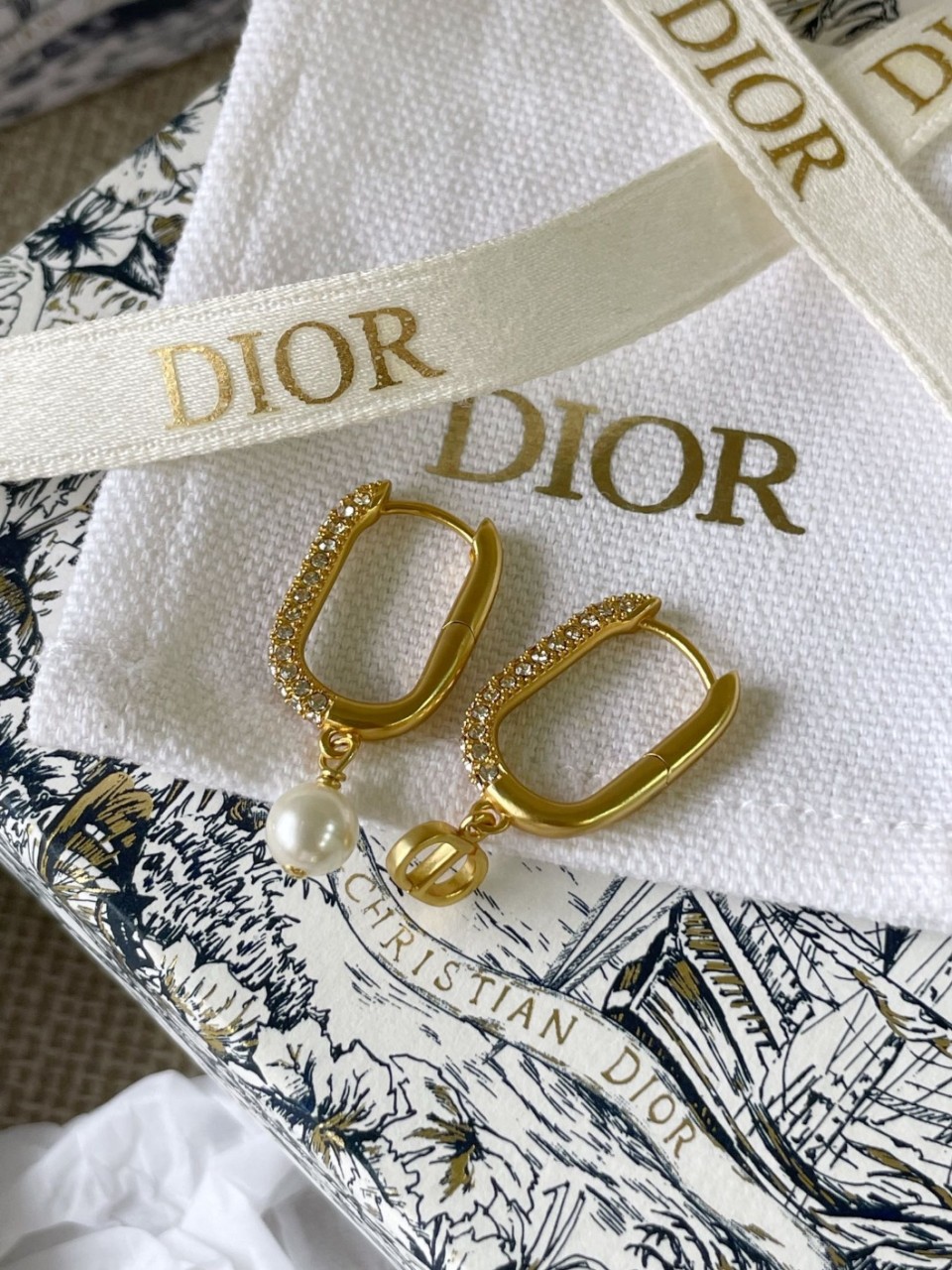 디올 큐빅 O링 CD 구슬 귀걸이