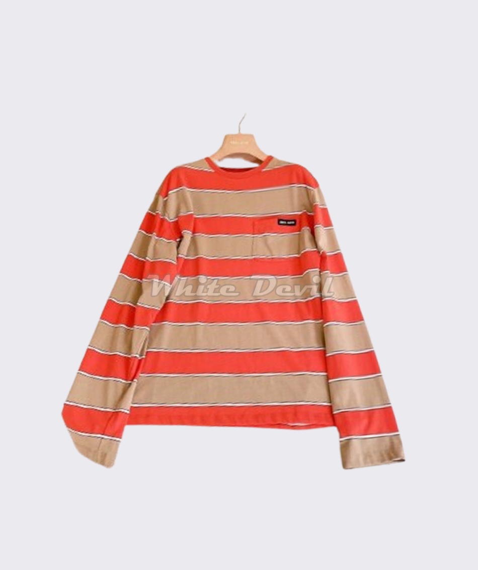MIUMIU 24 스트라이프 로고 구제 넥 니트 긴팔 티