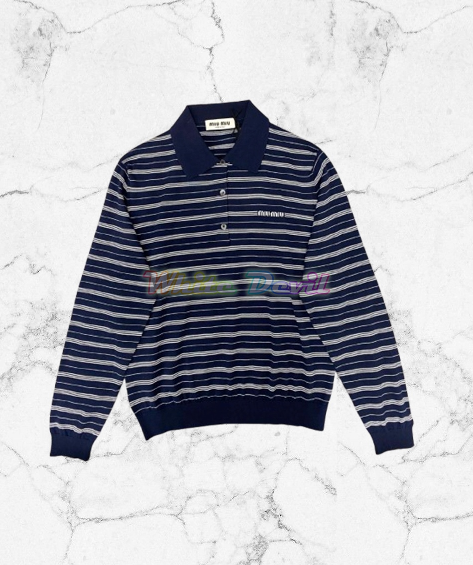 미우미우 스트라이프 면 니트 폴로 셔츠